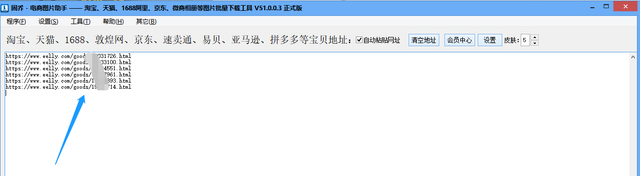 如果有多个商品要采集,就全部打开复制,链接会自动一行一个粘贴到工具,效果如图: