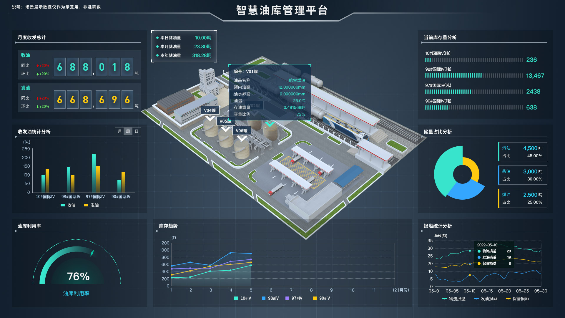 “智慧油库”依托管控一体化平台,利用物联网、大数据、可视化、数字孪生等技术,实现对油库各类系统集成、数据利用和信息共享,通过对油库各子系统的互联互通,将油库操作、运行、管理中各个主要环节及现场主要设备,建立成一整套以预警、预测为主要手段的实时监控管理系统,{BANNED}最佳终实现油库作业与运营管理各个层面的智慧化应用,全面提升油库自动化、智能化水平。